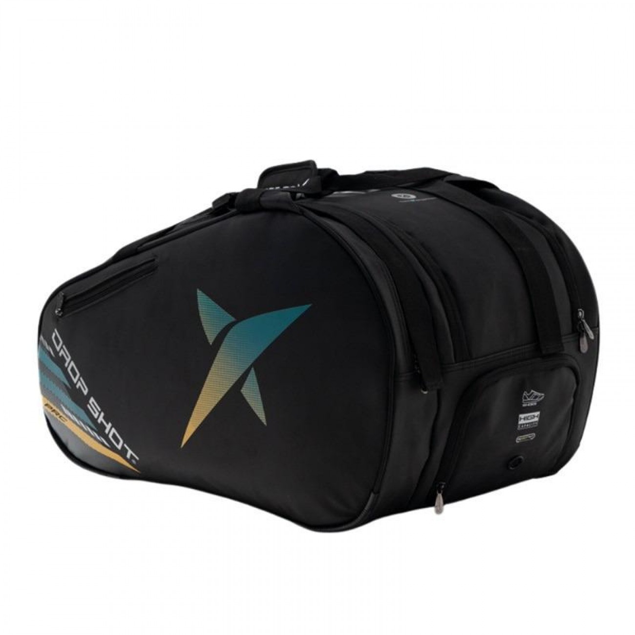 The Drop Shot Alsai Campa Black Padel Racket Bag is a model designed for players looking for capacity, organization and an elegant and professional design for their day to day on the court.