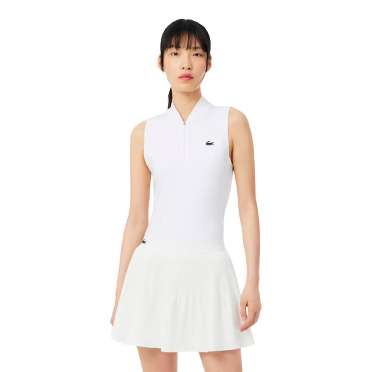 El Polo Lacoste Sleeveless Ultra Dry Mujer combina elegancia deportiva y rendimiento profesional en una prenda diseñada para jugadoras que buscan frescura, libertad de movimiento y estilo dentro y fuera de la pista.