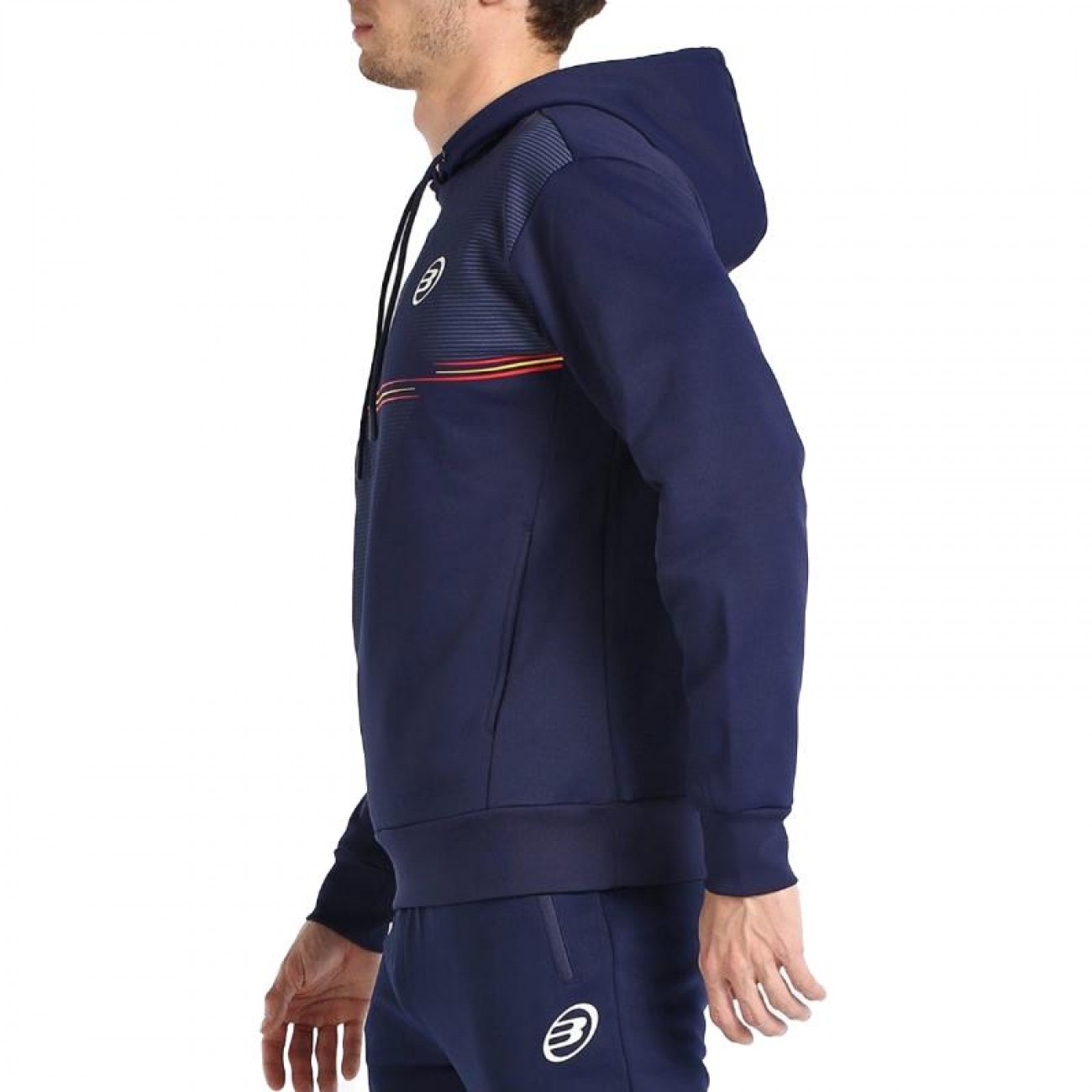 Su diseño cerrado con capucha ajustable, delantero estampado, bolsillos laterales y acabados en rib en puños y bajo aporta un look deportivo y moderno, ideal tanto para la pista como para el día a día.